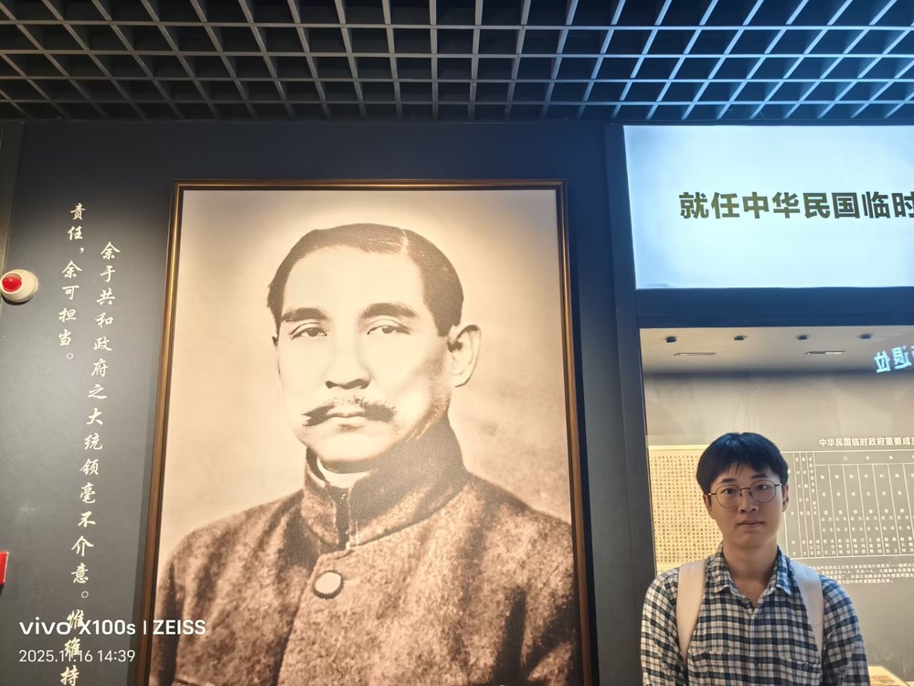 活动内容:薛皓天带领小组成员前往中山陵,缅怀孙中山先生并深入领悟革命精神。大家参观孙中山纪念馆,了解其生平事迹,并对以孙中山为代表的革命先烈的崇高精神产生了更加深刻而真切的感悟。其中,清朝末年的革命烈士林觉民在1911424日晚写给妻子陈意映的绝笔信《与妻书》,将个人情感与家国命运紧密交织,令人难以忘怀。孙中山先生作为众多革命家中的领路人与先行者,其为国救亡图存的持续努力和克服困难的精神品质,值得青年学子深入学习,这也是此次活动的根本目的。