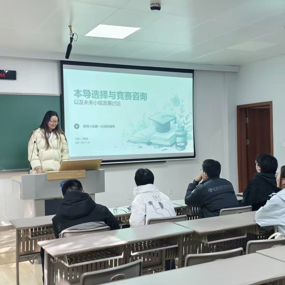 活动内容:韩欣邑带领同学们研读了往年的本导与综测通知,使大家对相关事宜和高水平学科竞赛有了初步的认识,为未来本导竞赛的发展奠定基础。此外,她还与同学们深入探讨了朋导小组的未来发展方向,涵盖了集体辅导的主题选择及相关团建活动的策划。最后,同学们进行了自由提问,在轻松愉快的氛围中拉近了彼此的距离,为后续辅导工作的顺利推进打下了良好的基础。