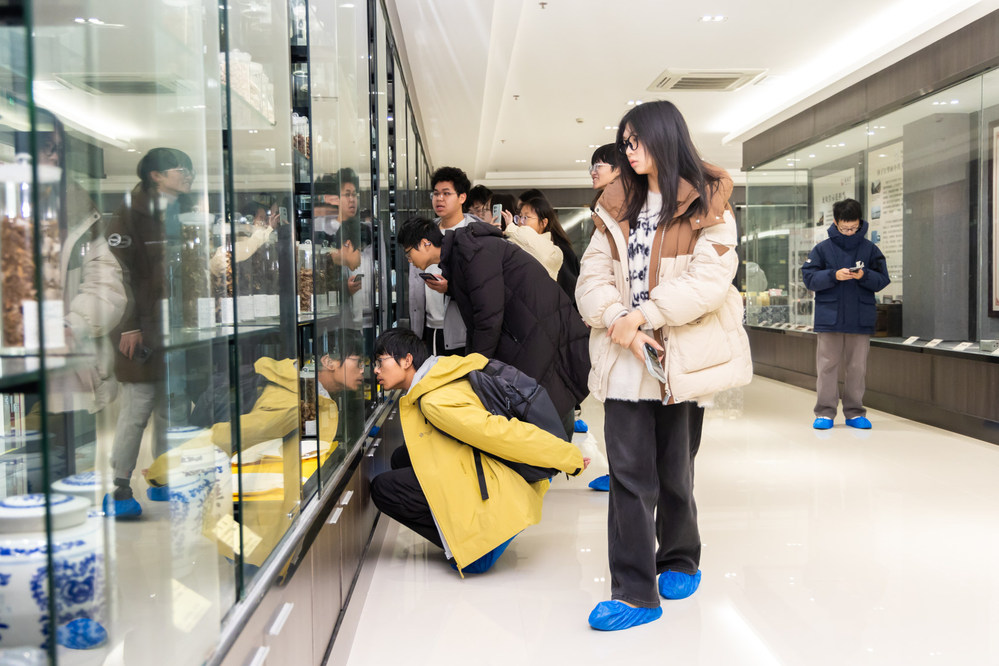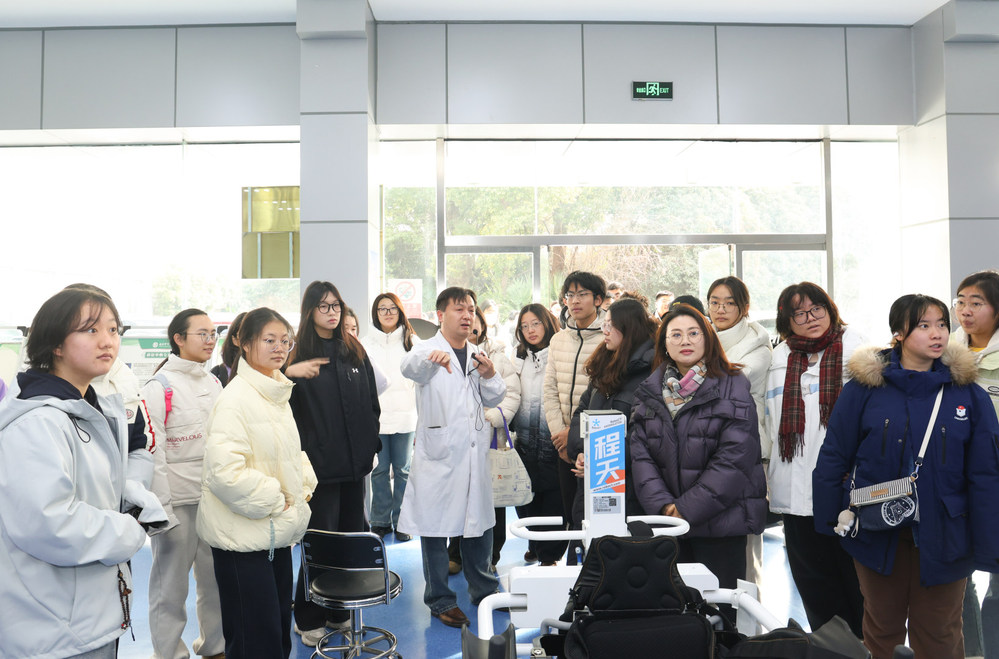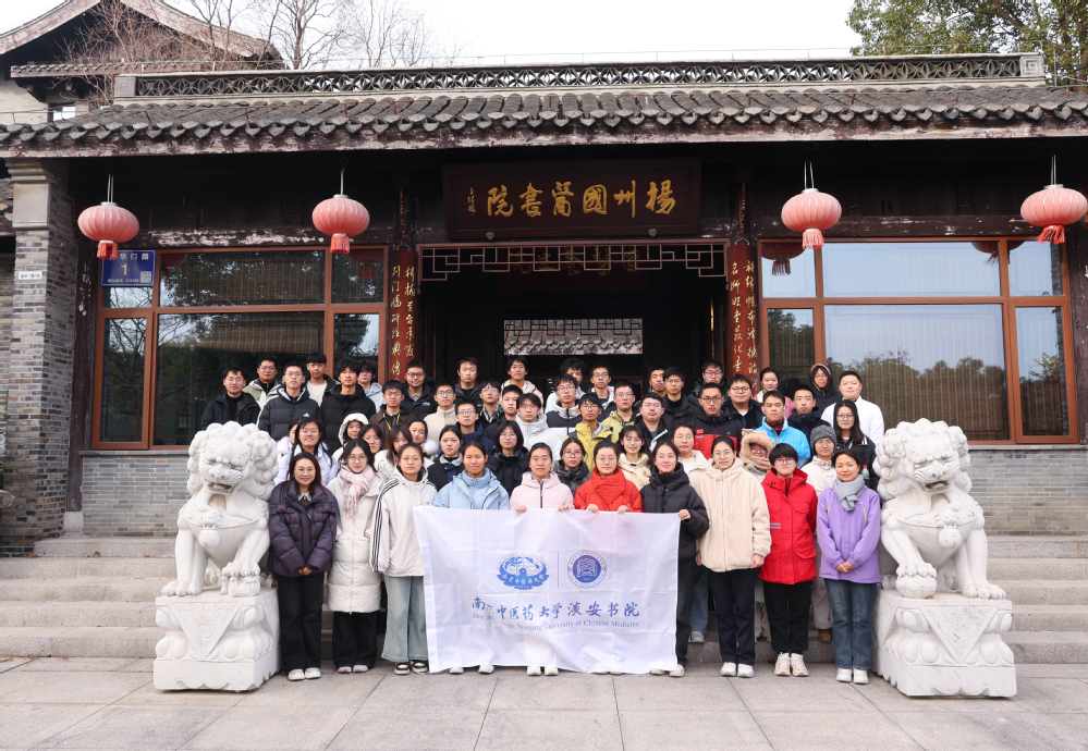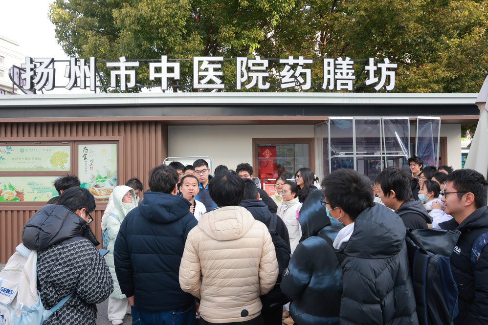 1月10日,研学队伍赴扬州展开文化寻访。在扬州市中医院,师生们先后参观了全国中医药文化宣传教育基地——扬州中医药文化展示馆、药膳坊、针灸部及康复中心。从历史脉络到“药食同源”的养生实践,从传统针灸疗法到现代康复技术的融合,大家多维度感知了中医临床的活力。