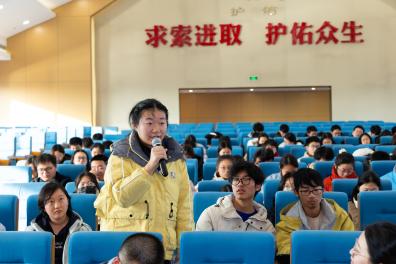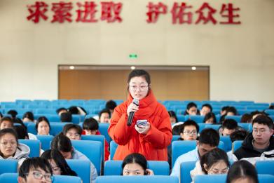 随后,汤佳院长作《破圈·融合——中医药文化人文经济学的创新实践》专题讲座,以鲜活的案例分享了医院在特色发展与文化传播方面的创新探索,为同学们打开了行业视野。