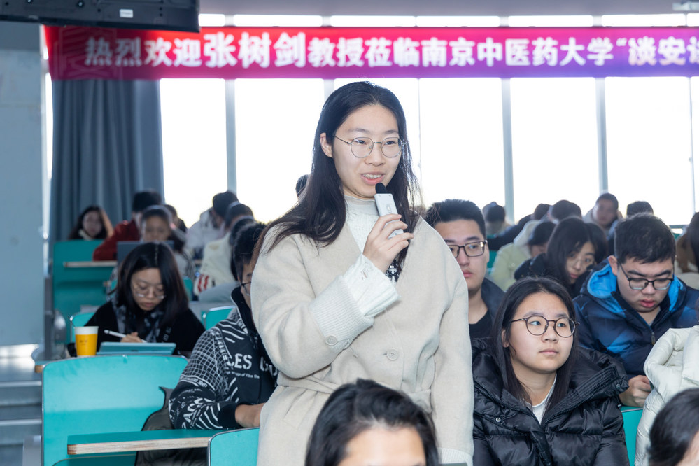 在互动环节,同学们围绕针灸与人文、学科研究范式等问题踊跃提问。张树剑强调,科学与人文相辅相成,真正的科学精神在于尊重事实、保持可证伪性与开放批判的态度。他表示,以科学精神与方法研究针灸学,而非简单套用现代科学术语,才是推动其融入世界文明潮流的正途。最后,他鼓励同学们要保持开放而审慎的思辨态度,在传承与创新中找到中医药在当代的独立坐标与时代价值。
