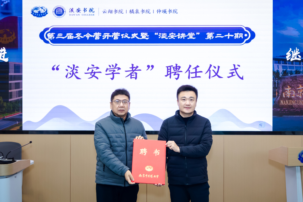 张宏如在致辞中对张树剑教授的到来表示热烈欢迎与感谢。他指出,本次讲座不仅是一次专业的学术梳理,更将启发同学们对中医药学科本质与发展路径的深层思考。他勉励在场学子,将今日之所思与冬令营的实践环节相结合,完成一次知行合一的求知旅程。在随后举行的“淡安学者”聘任仪式上,张宏如为张树剑颁发聘书。