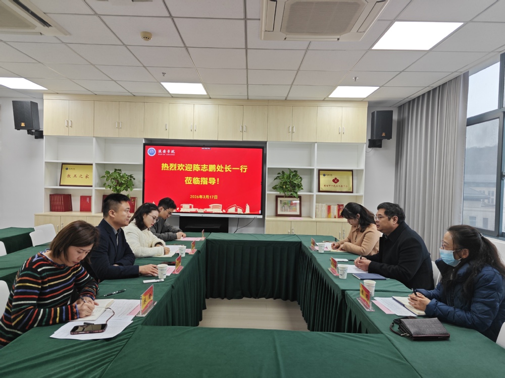 3月17日,教务处处长陈志鹏、副处长陈明一行莅临淡安书院,调研指导拔尖创新人才培养工作。书院领导班子及相关教师参与座谈交流,会议由书院副书记、副院长(主持工作)张宏如主持。