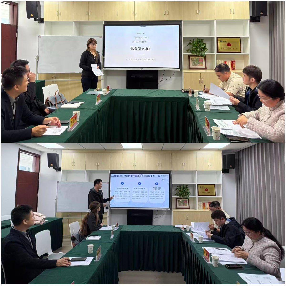 活动伊始,《南京中医药大学校史文化教育》《书院与学生发展》两门课程主讲教师依次进行试讲。专家组对两位试讲教师的认真态度和教学表现给予充分肯定,认为试讲教师备课充分、思路清晰,课程设计贴合书院育人定位与学生发展需求。