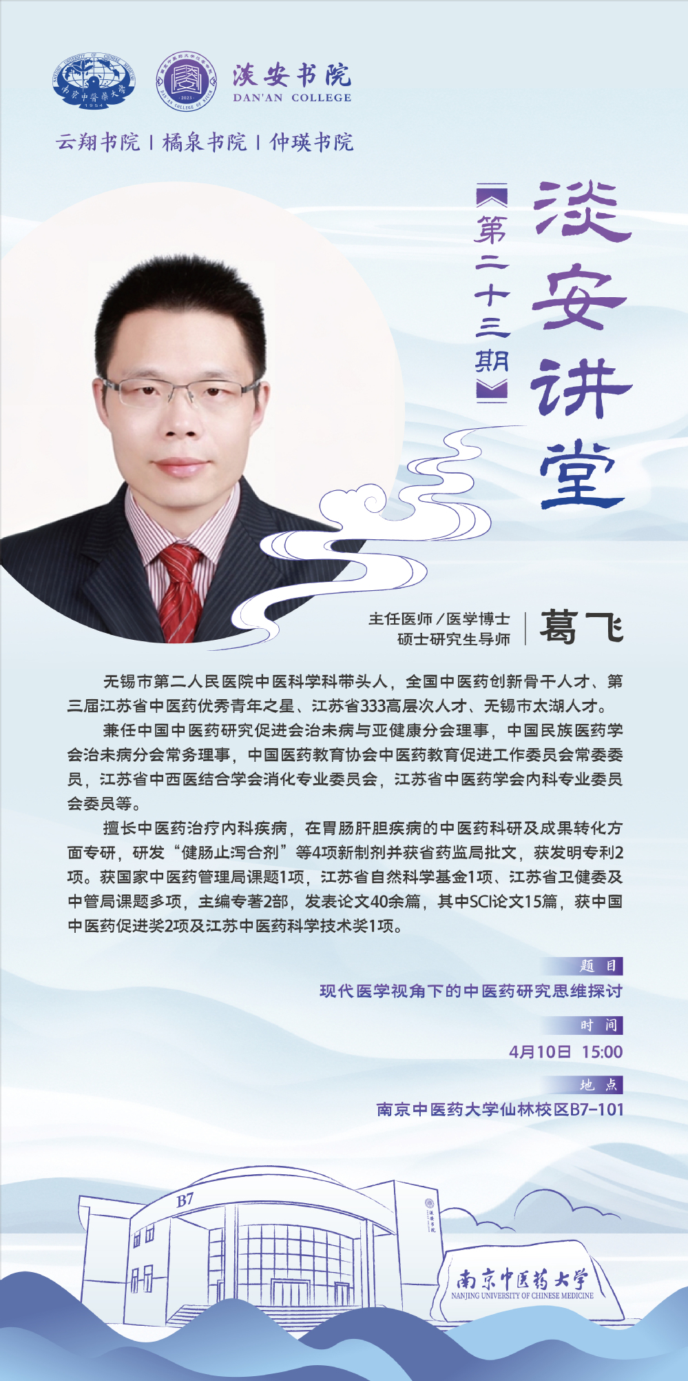 “淡安讲堂”第二十三期预告|葛飞:现代医学视角下的中医药思维探讨
