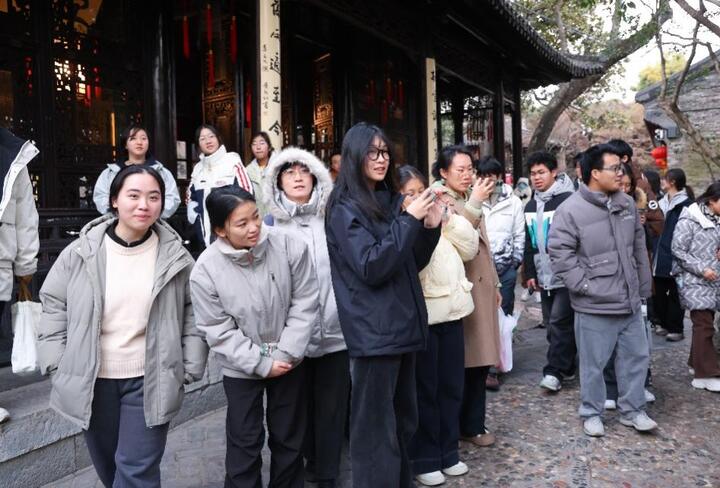 扬州市蜀冈风景区,是此行研学的第三站。作为江南文化与山水格局交织之地,蜀冈在呈现城市历史纹理的同时,更承载着中医药文化的民间经验与日常实践。学生们在这里看到了中医药文化的“雅”与“俗”。国家级中医药养生示范基地——扬州国医书院,尽显中医人文精神与传统雅韵,而梅岭社区卫生服务中心则展现了中医药在基层服务的落地之本。行程尾声,师生漫步于扬州个园,园林艺术中“天人合一”的哲学意境,与中医药的核心思想产生了完美共鸣。至此,一场贯通从知识到体验、从文化到实践、从医术到人文多维度的“行走的课堂”,画上圆满句点。